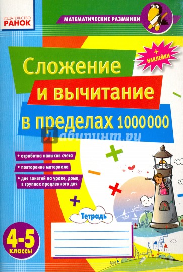 Пособие содержит задания на сложение и вычитание в пределах 1 000 000, что является обязательной составляющей изучения математики. Оно предназначено для отрабатывания материала, изученного на уроках. К тетради прилагаются наклейки, с помощью которых учащийся сам сможет условно оценить свои результаты, наклеив соответствующую из них.