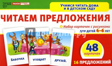 В набор входит 48 обучающих карточек, из которых ребенок может сложить 16 ярких рисунков и прочитать предложения. Использование карточек способствует закреплению у детей умения читать слова, составлять из них предложения, понимать смысл прочитанного.