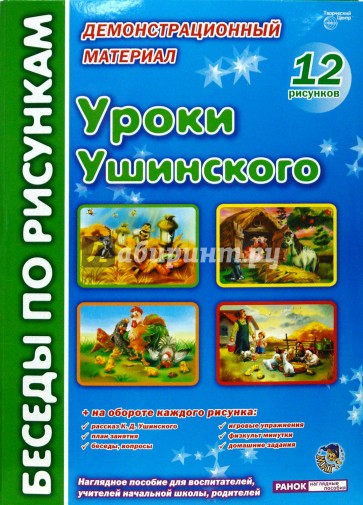 Пособие содержит 12 комплектов демонстрационного материала, каждый из которых состоит из рассказа К. Д. Ушинского, иллюстрации, методических указаний, лексического материала, игр и заданий, что поможет сделать занятия полезными и интересными для детей.