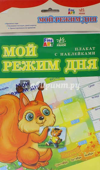 Большие обучающие плакаты с наклейками будут интересны как дошкольникам, так и первоклассникам. С их помощью дети научатся составлять свой режим дня и ориентироваться во времени, смогут составить своё расписание уроков и дополнительных занятий.