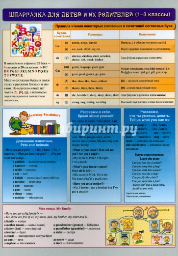 Шпаргалка по английскому языку для детей 1-3 классов и их родителей.