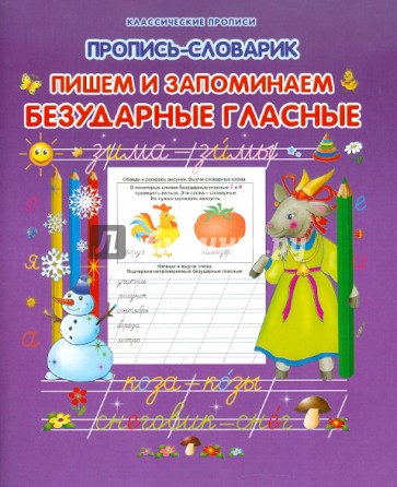Главной особенностью этой прописи является удобный словарик, по которому ребёнок сможет проверить правописание всех слов с безударными гласными из упражнений. Благодаря возможности самоконтроля ребёнок без труда освоит одну из самых сложных тем русского языка.