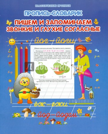 В прописи-словарике "Пишем и запоминаем звонкие и глухие согласные" правильное написание всех слов из упражнений можно проверить по словарику. Сочетание увлекательных упражнений с возможностью самопроверки позволит ребенку быстро запомнить эту важную тему русского языка.