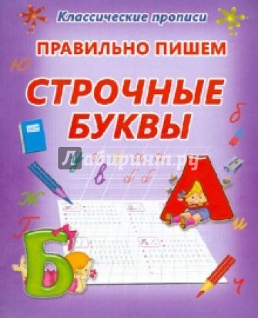 Пропись "Правильно пишем строчные буквы" поможет развить у ребенка умение совершать плавное и неотрывное движение руки во время письма.