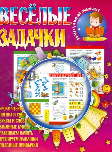 Пособие с веселыми задачками. Книга содержит элементы для раскрашивания графитными карандашами.
